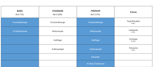 Schutz vor Steinschlag, kleine Stöße und Kratzer
